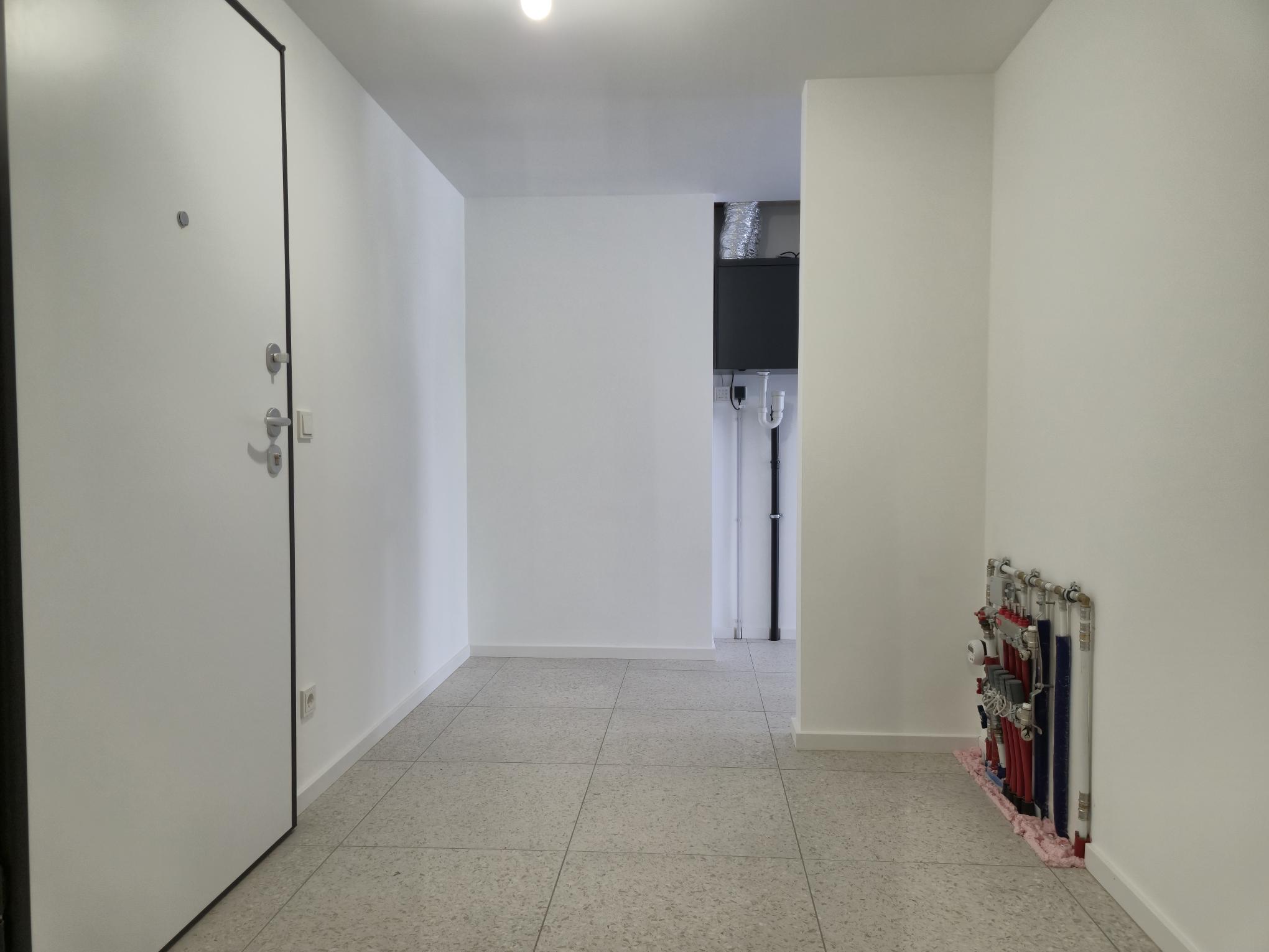 Large 56.05 m2 studio on 1st floor of a residence with elevator, comprising entrance hall, kitchen opening onto living room, shower room and cellar.