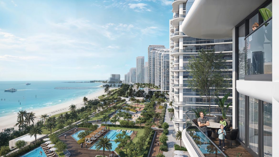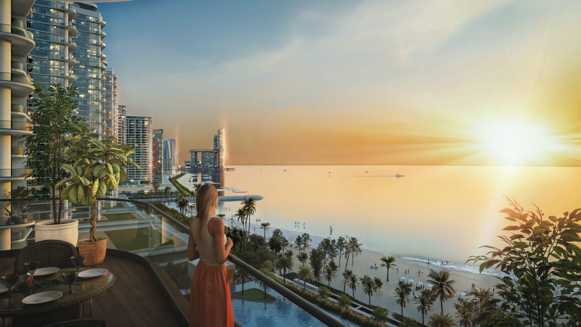 Aquamont offers one- to four-bedroom apartments with sea views and direct access to seven kilometers of beach. Umm Al Quwain is 50 minutes from Dubai downtown.