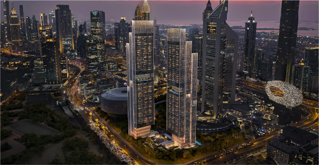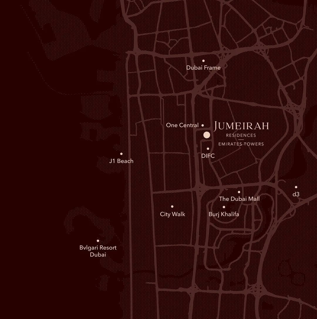 Jumeirah Residences Emirates Towers is a new architectural icon, ideally located on Sheikh Zayed Road in Dubai’s Central Business District. This prestigious address places its residents just a stone’s throw from the Museum of the Future, and only minutes from the Dubai Mall, City Walk, J1 Beach and the Dubai Frame, offering privileged access to the city’s main business, leisure and cultural hubs.
